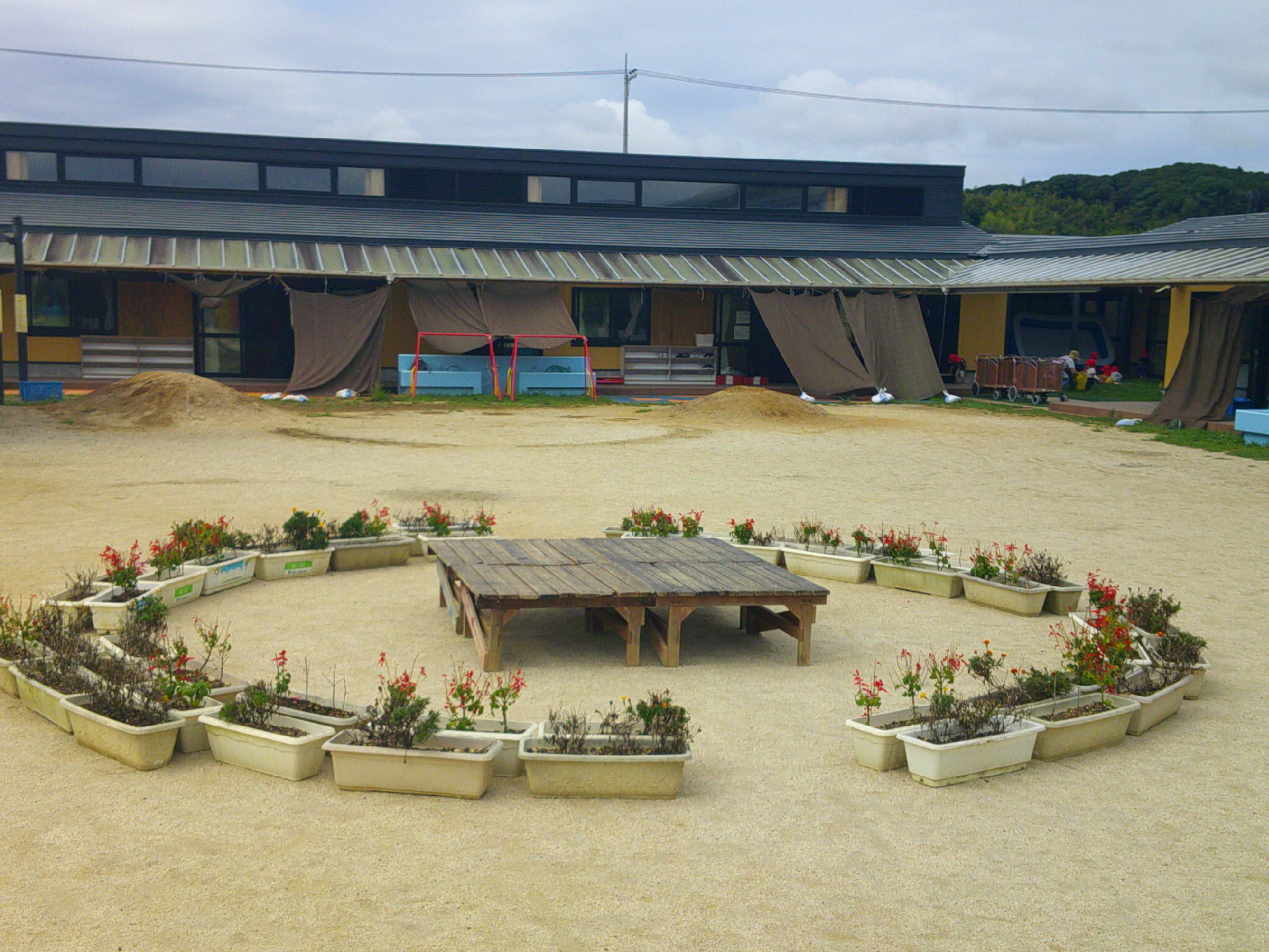 プランターを 園庭の真ん中に動かしました。