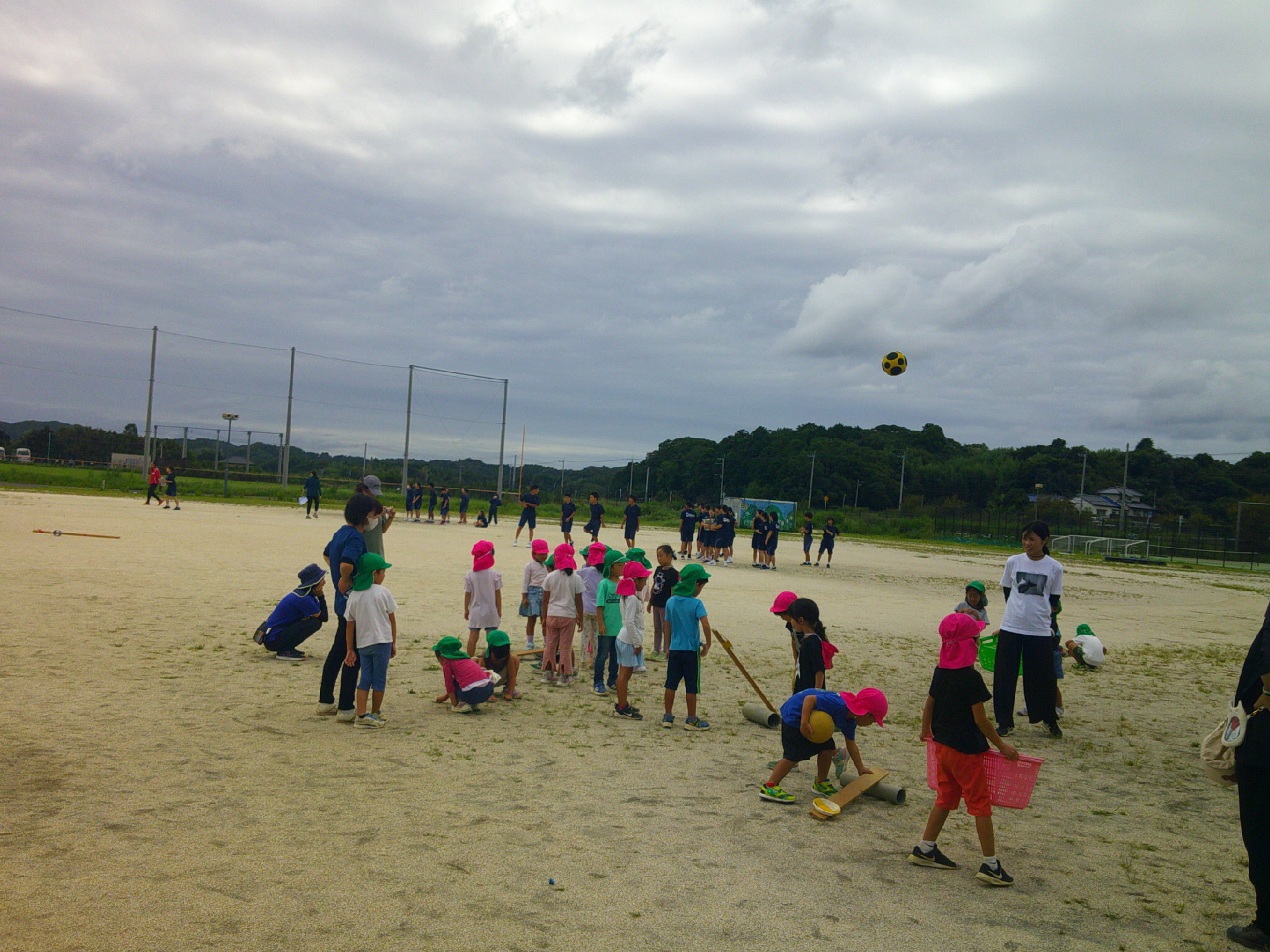 中学生が練習するグラウンドの隣で
