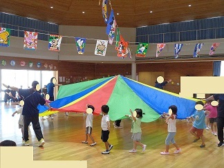 最後にぱんだ組のパラバルーン「さんぽ」子ども達のがんばりに拍手でした。