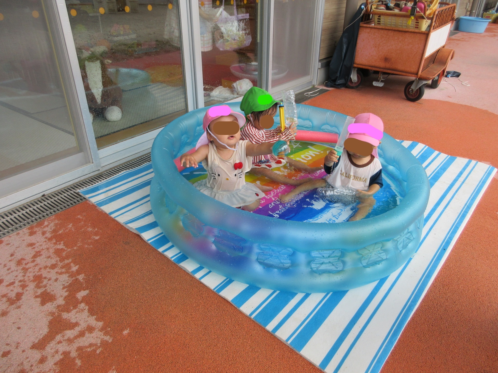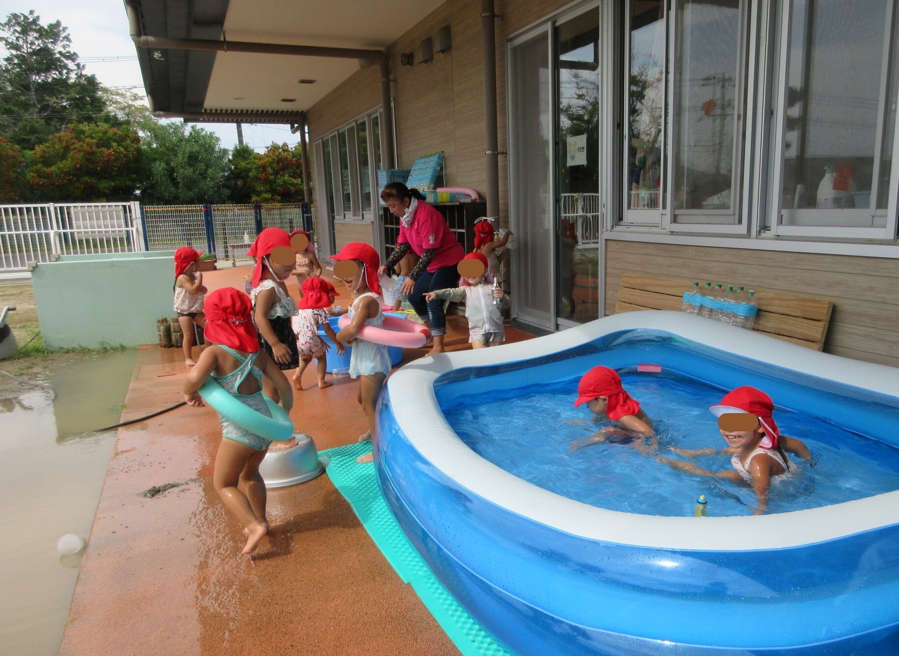 明日までの予定のプール遊びですが、明日はちょっと涼しくなる予報。