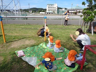 ひよこ組のお友達は木陰でのんびり・・・