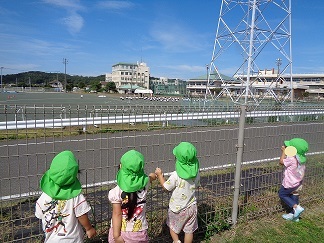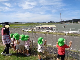 保育所のお友達は、中学校の体育祭の練習を応援しています!