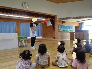 3歳から5歳の誕生会です。お誕生日、おめでとう!