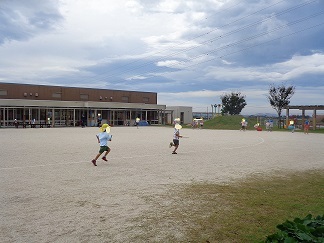 中学校の体育祭練習を見に行きました。迫力のある走りに子ども達はびっくりしていました。