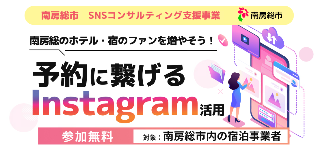 南房総市SNSコンサルティング支援事業「南房総市のホテル・宿のファンを増やそう!予約に繋げるInstagram活用」(別ウインドウで開く)