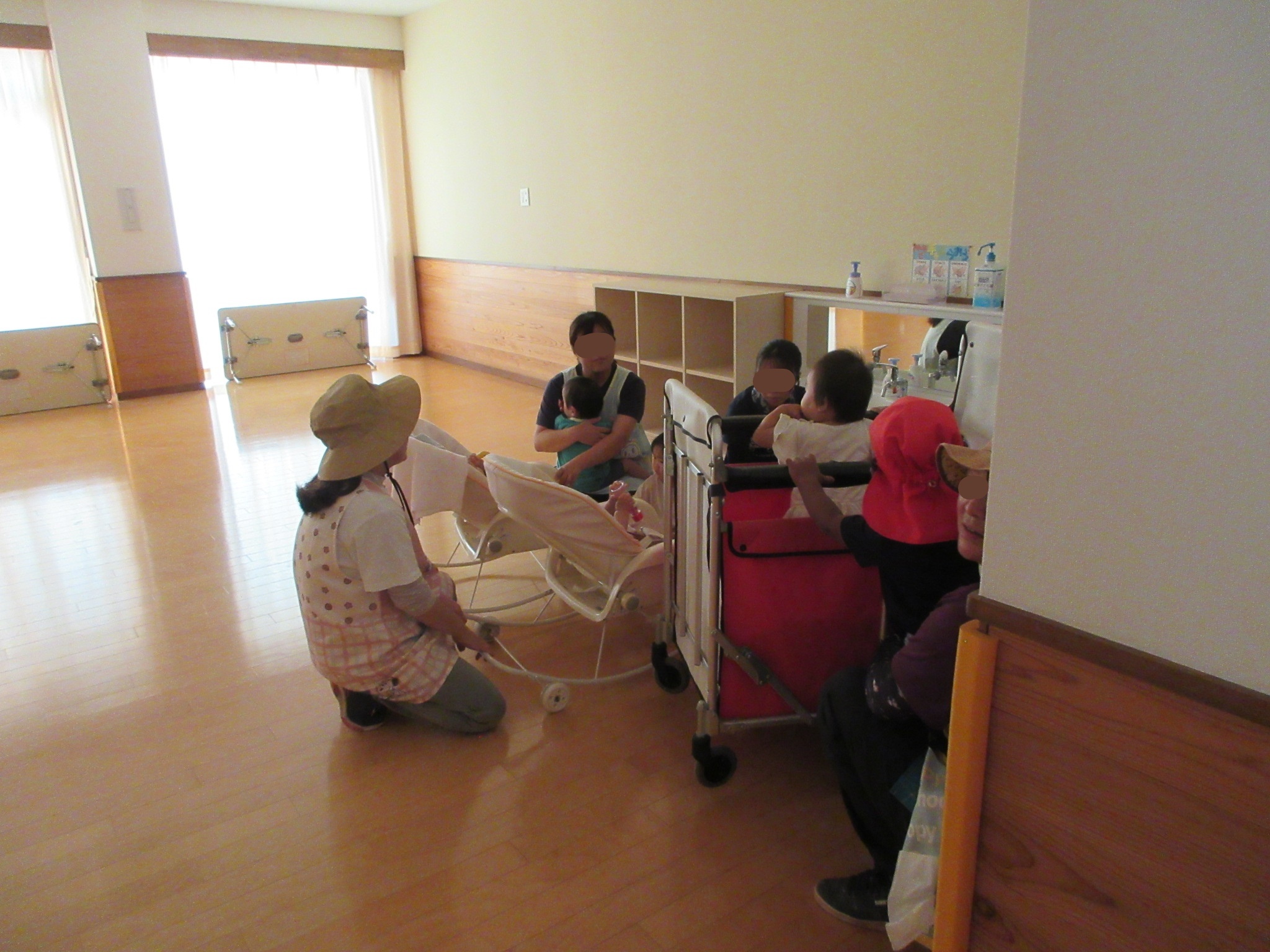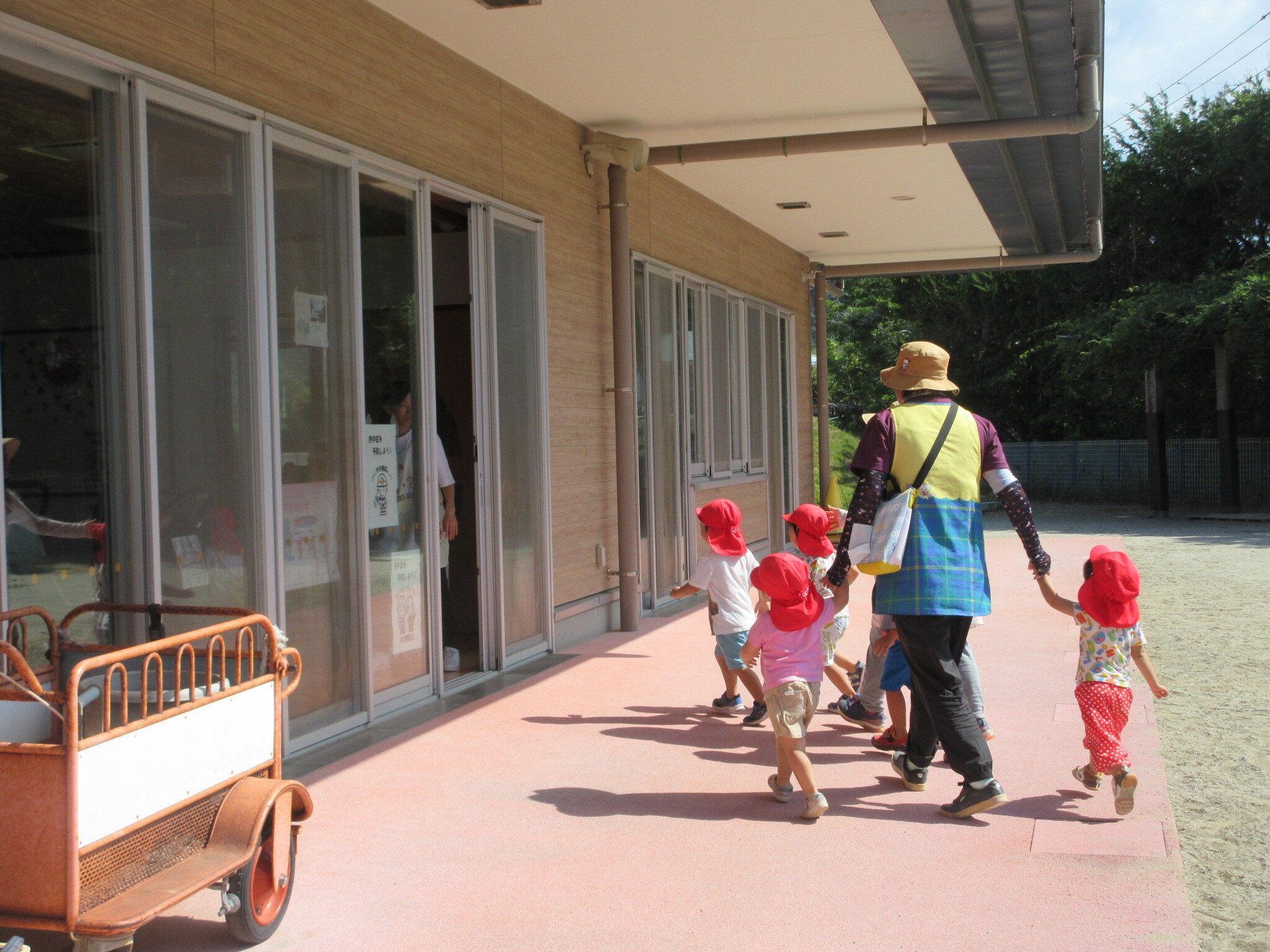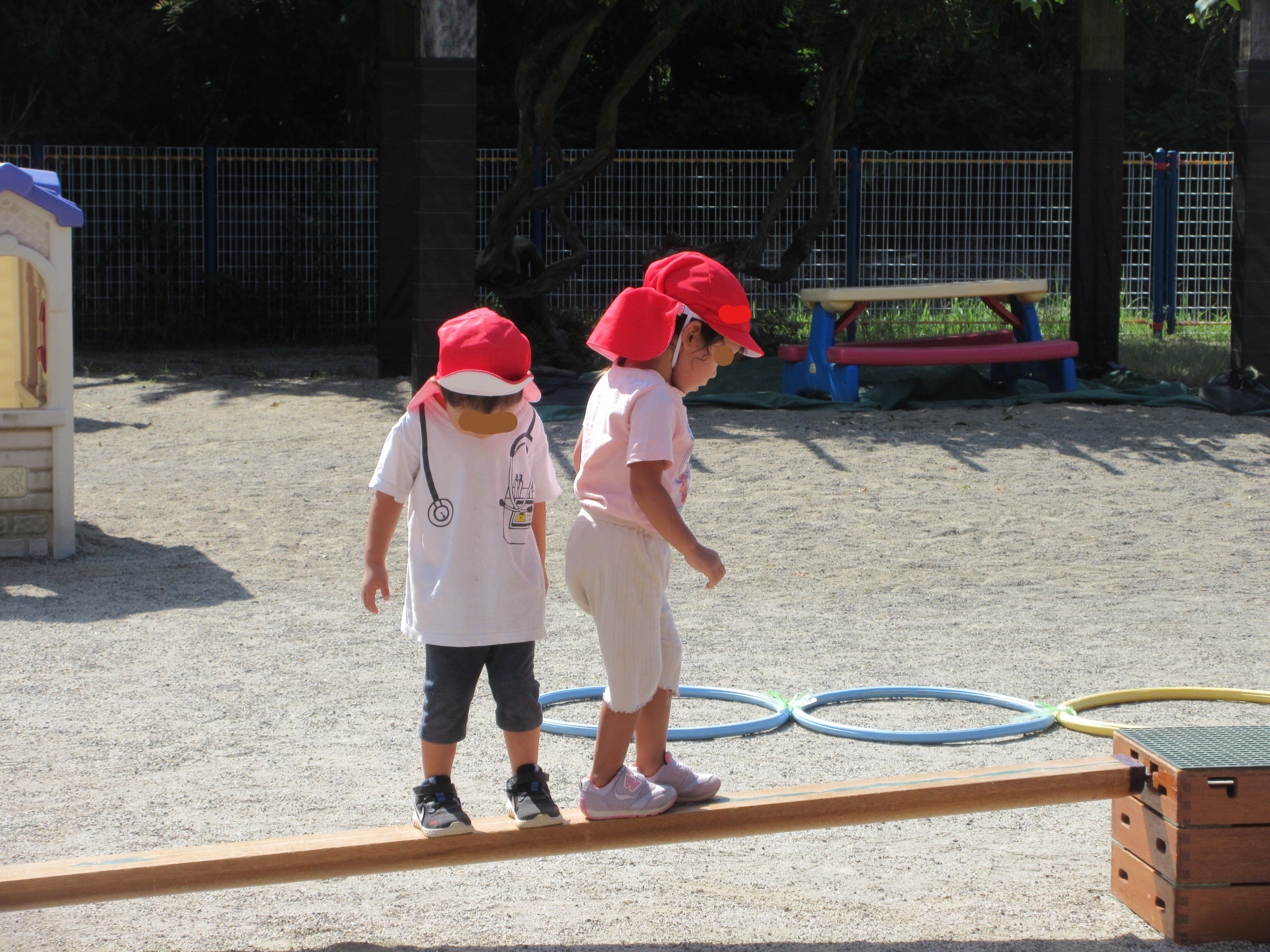 戸外遊び中、園庭内を覗く不審者を発見。(訓練)