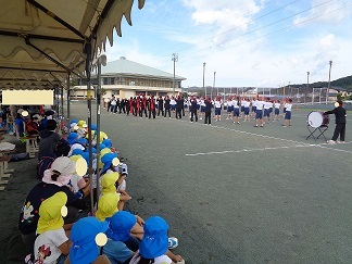 最後は応援合戦です。張り詰めた緊張感の中、中学生の見事な演技に子ども達も息を呑んでいました。