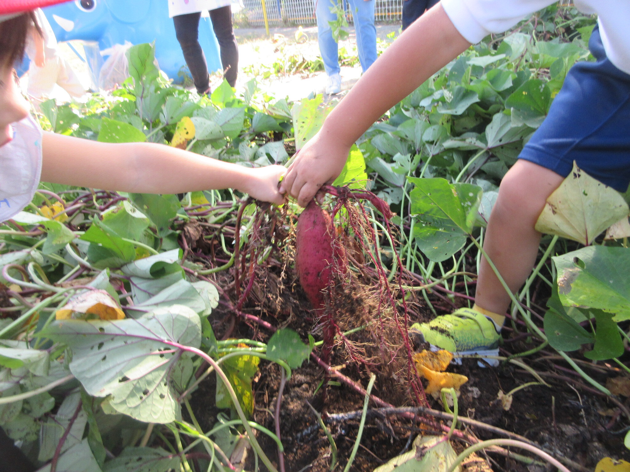 幼稚園さんと一緒にお芋を掘り当てました。
