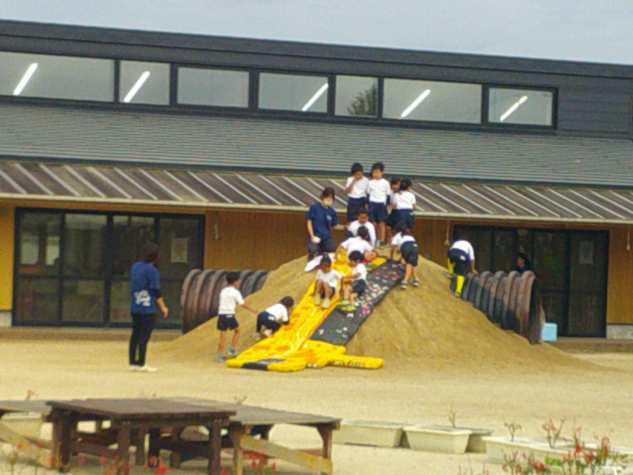 立てかけてみると きりんの滑り台みたい。