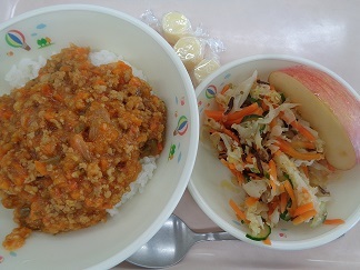 ドライカレーチーズで鉄分キャベツの塩昆布あえりんご