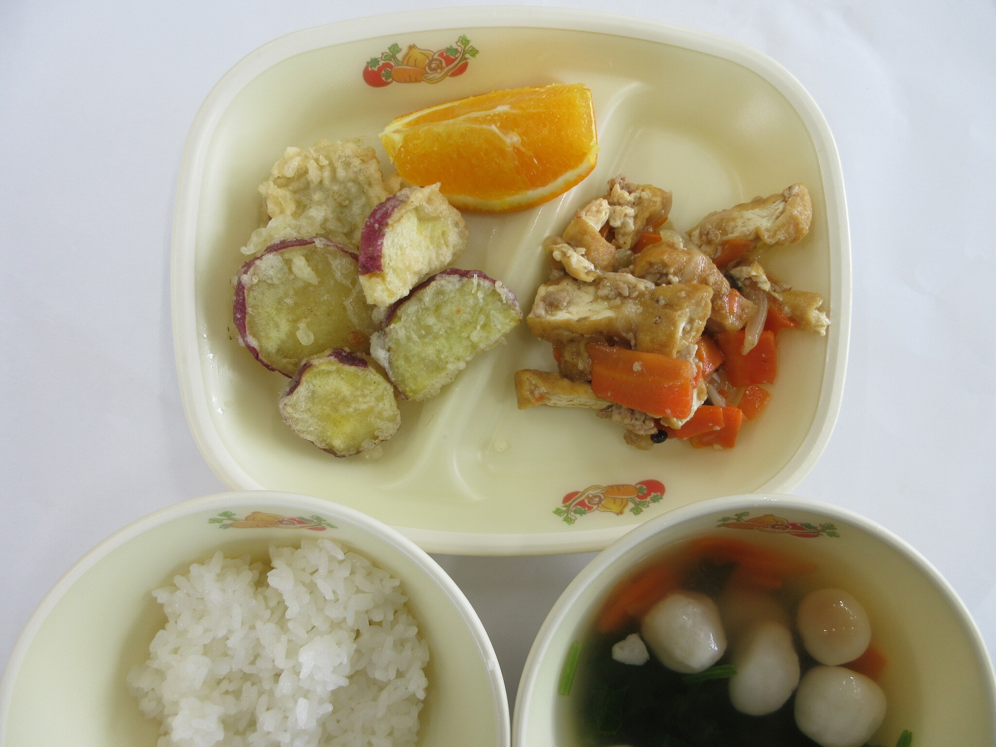 ※園でとれたさつま芋。子どもたちリクエストの天ぷらになりました。