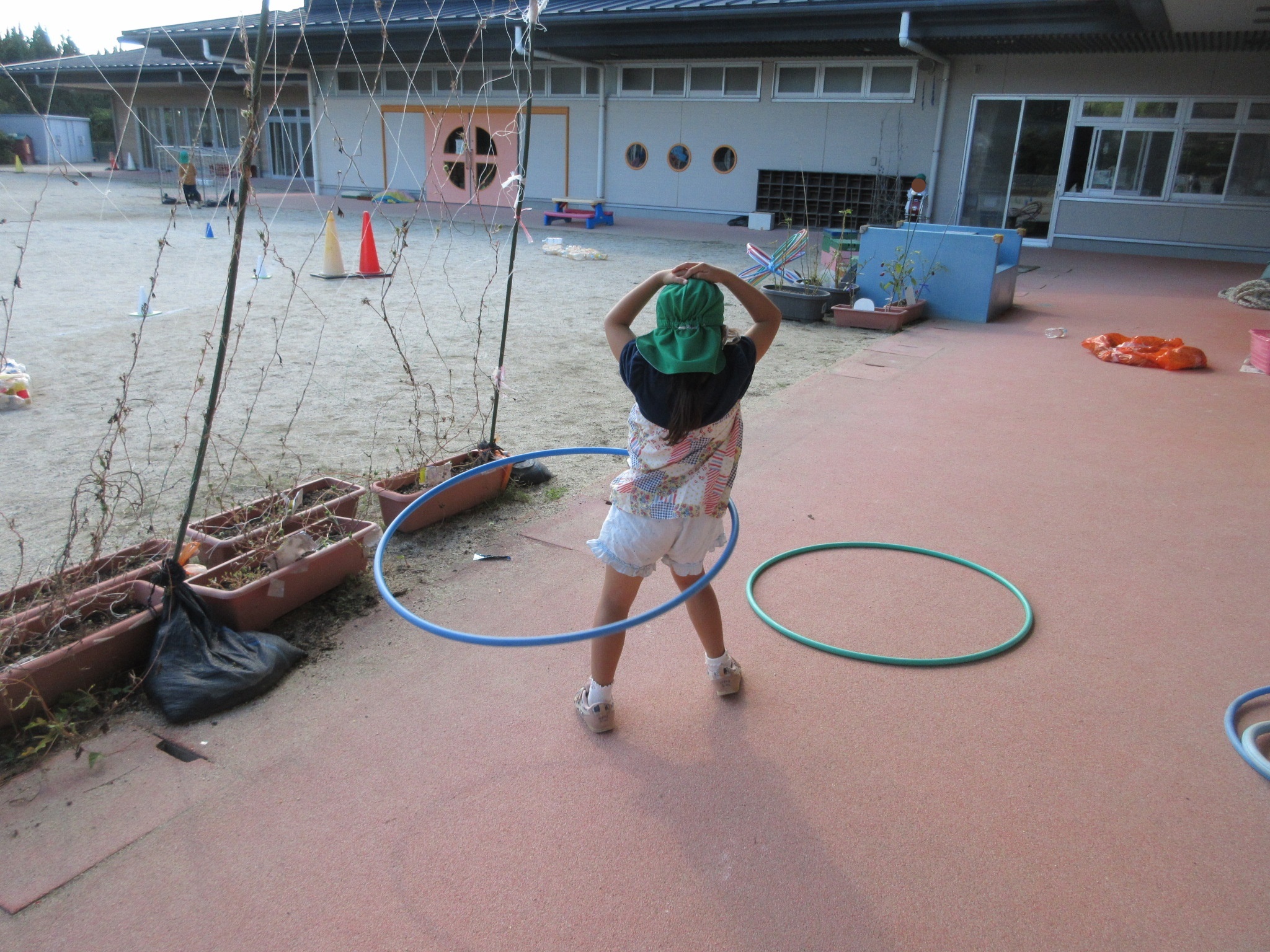音楽に合わせて、フラフープに挑戦するお友達もいます。