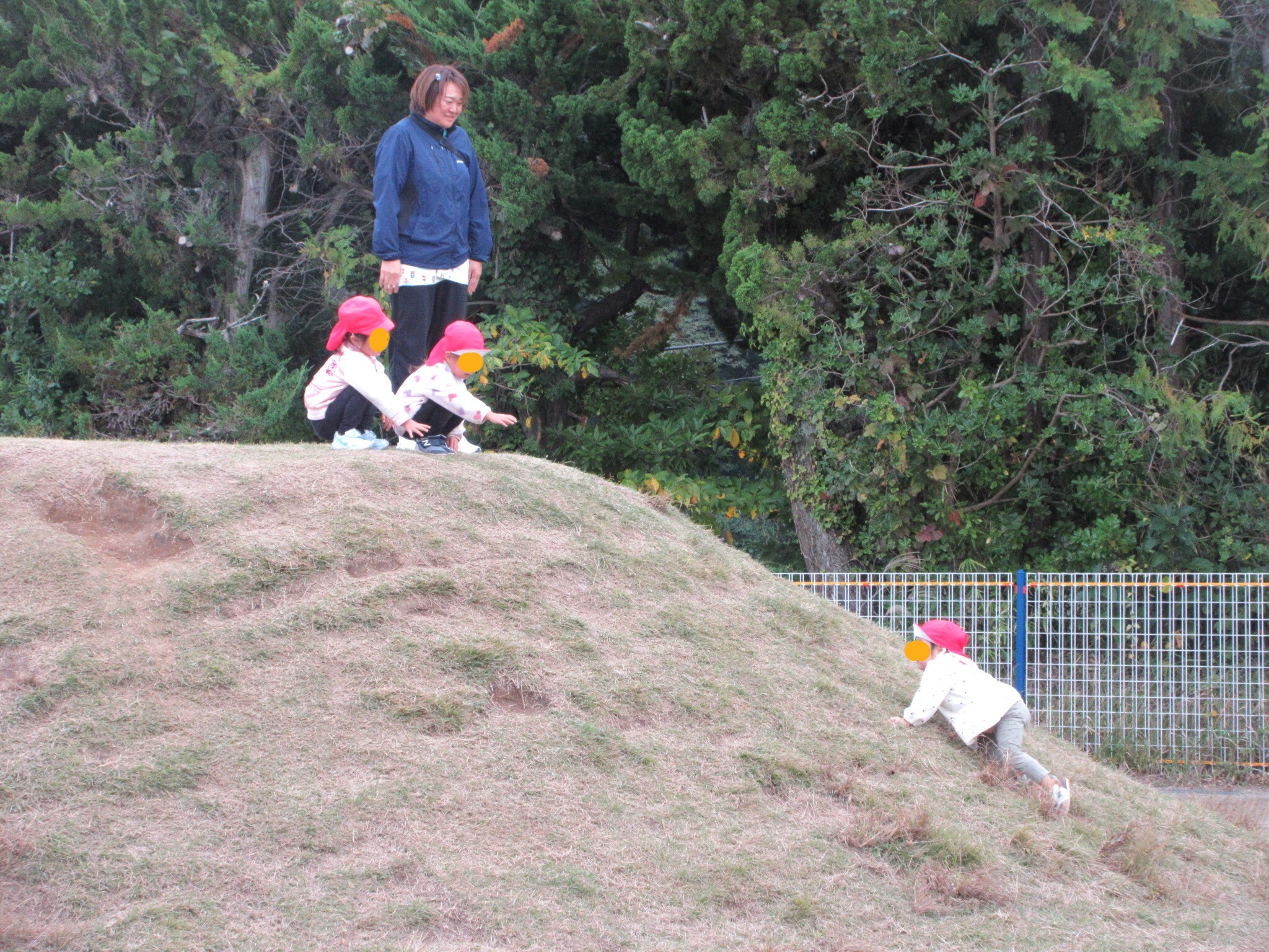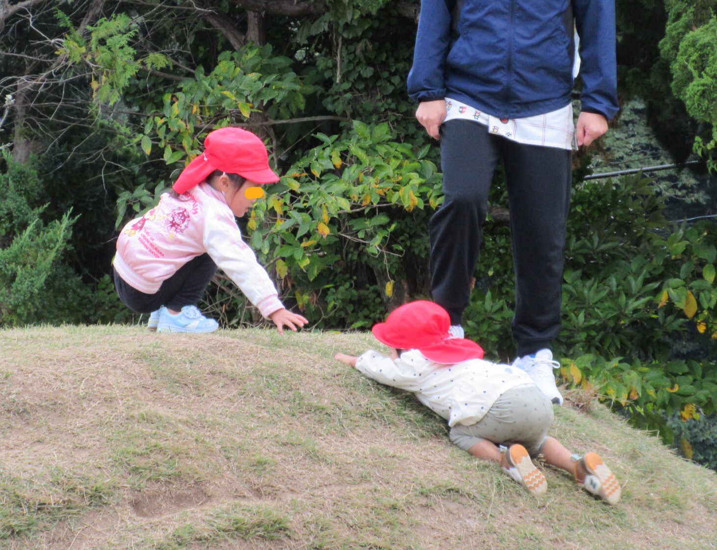 まだ築山遊びの経験が少ないお友達。