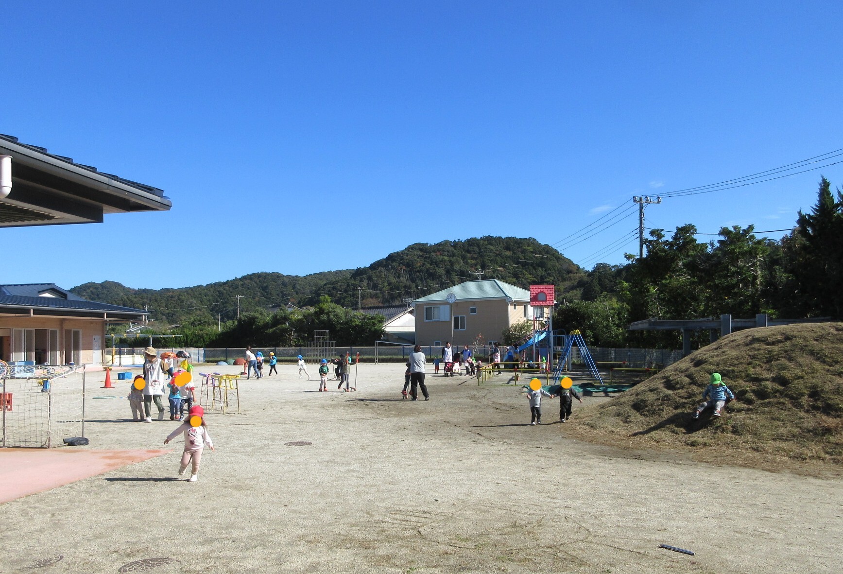 0歳児から5歳児が幼稚園側の園庭で、