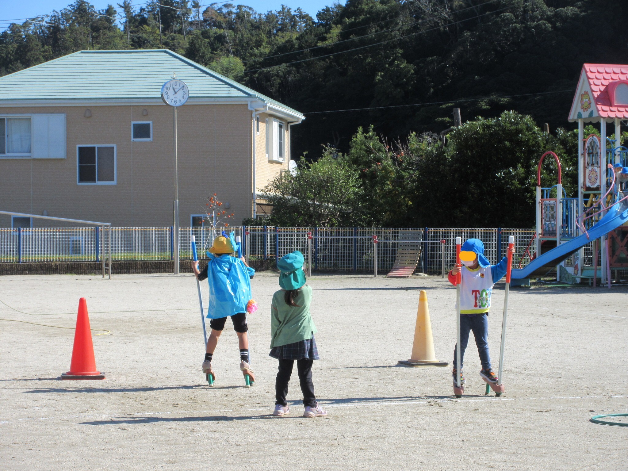 竹馬を見つけて挑戦しているお友達もいます。