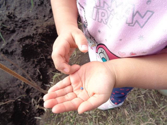 3歳さんは、大根の種を蒔きました。