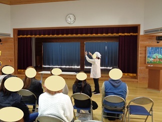 いよいよ給食です。栄養士さんに箸の持ち方をお話ししてもらいました。