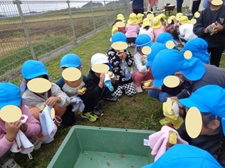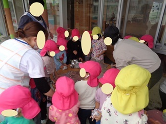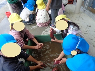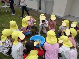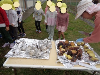 0歳から5歳までホカホカの焼き芋をいただきました。なかには、何回もお代わりをするお友達もいました。おいしかったね!