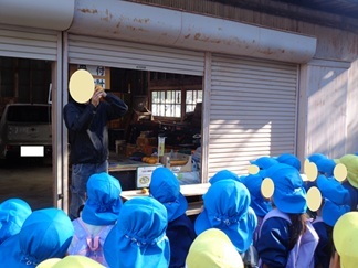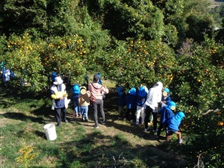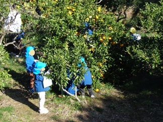 みかん園に着きました。みかんのとり方やおいしいみかんの見分け方などを教わりました。
