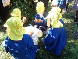 甘酸っぱいおいしいみかんをたくさん食べました。みんないくつ食べたのかな?
