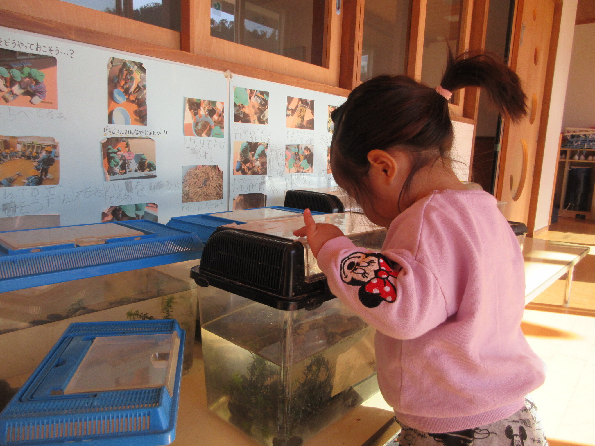 イモリやカマキリをじーっと覗き込んでみたり、