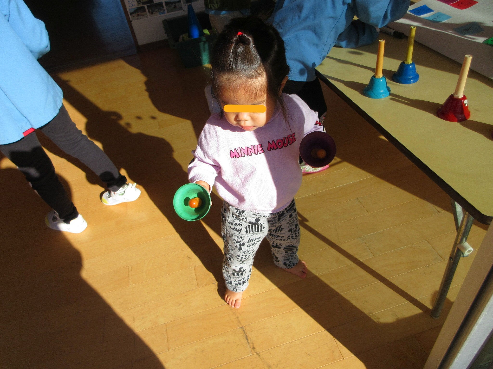 りす組前のテラスでも音遊びを楽しんでいます。