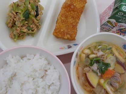 ごはん イカのレモン煮 納豆和え 豚汁 牛乳