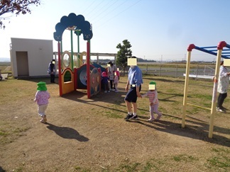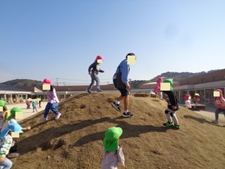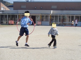 今日から3日間、子ども園に中学2年生のお兄さん、お姉さんが職場体験学習で来ています。園庭でたくさん遊んでもらいましょう!