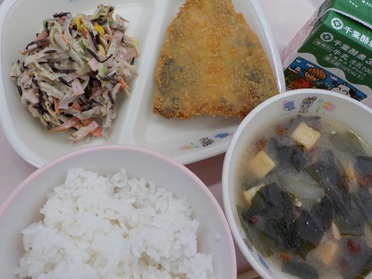 ごはん あじフライ ごぼう彩りサラダ なめこ汁 牛乳