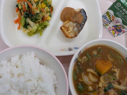 ごはん 鯖のゆず味噌焼き アーモンド和え 冬至の開運汁 牛乳
