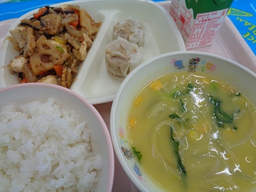 ごはん しゅうまい 麻婆豆腐 中華コーンスープ 牛乳