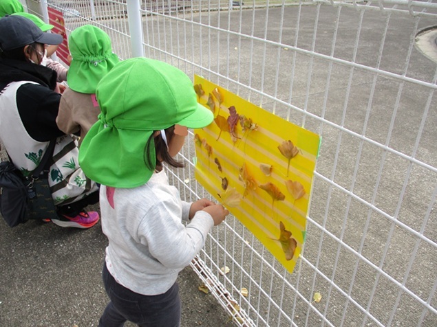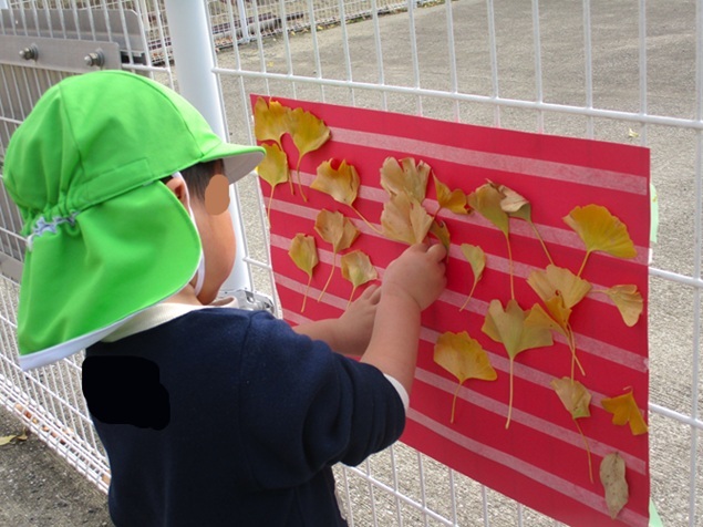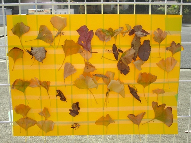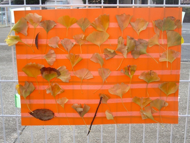 今日は、イチョウの葉を使って