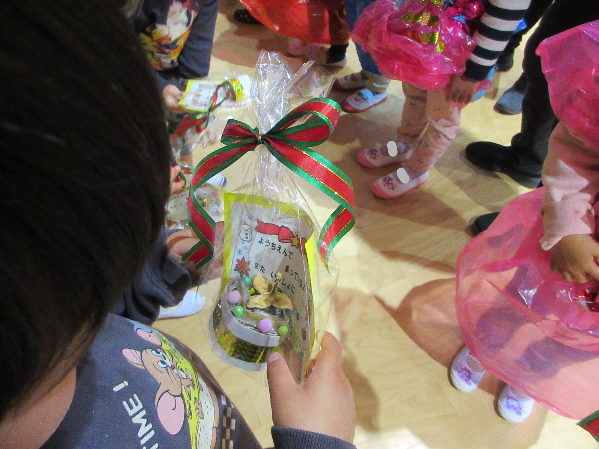 ぞう組さんから、秋の実を使って作ったケーキの贈り物がありました。
