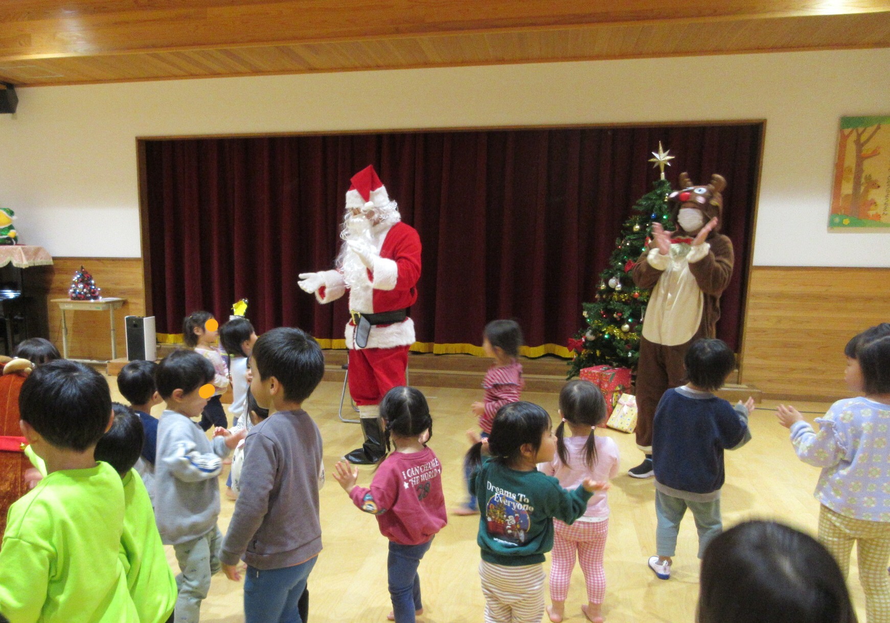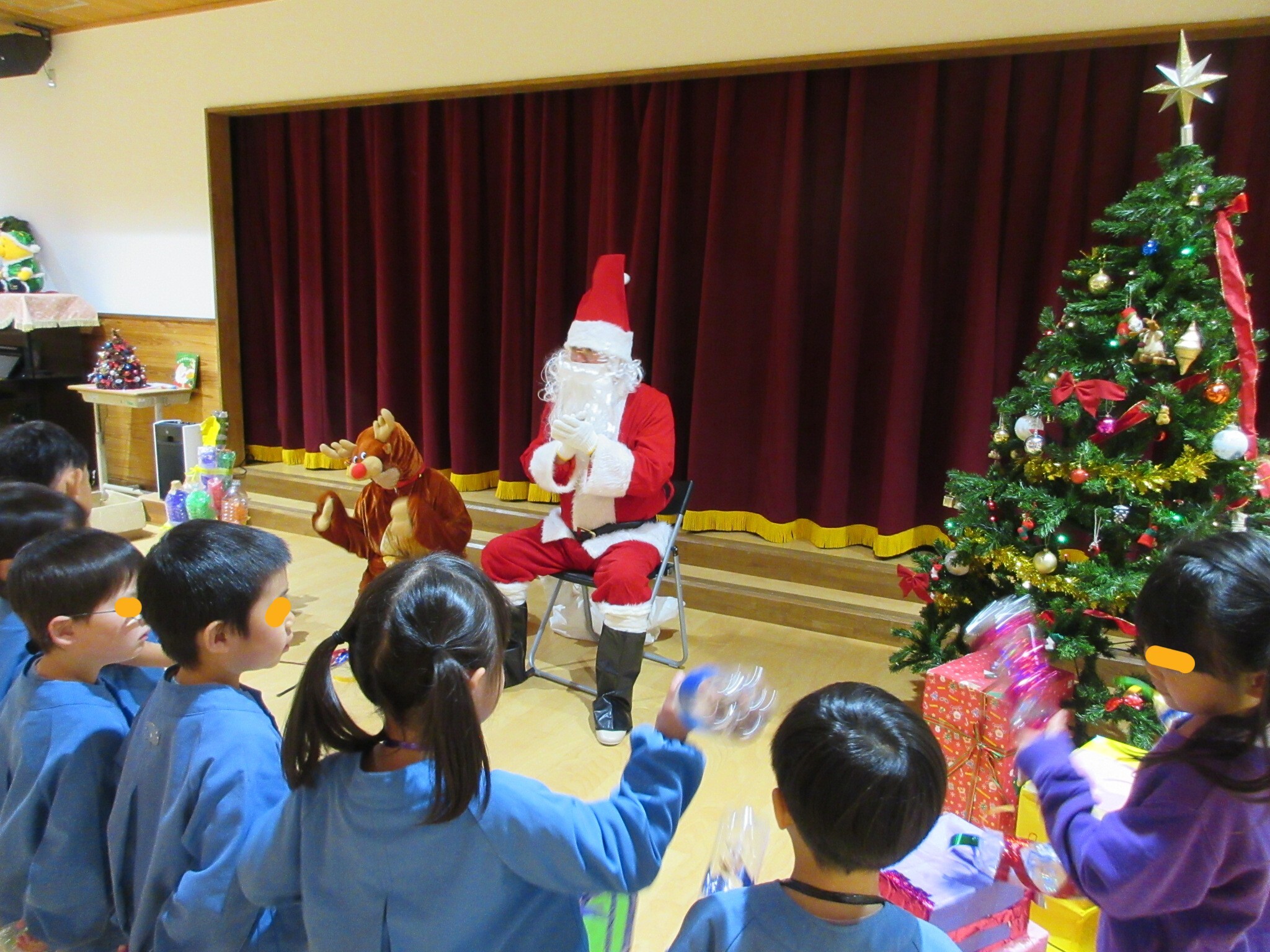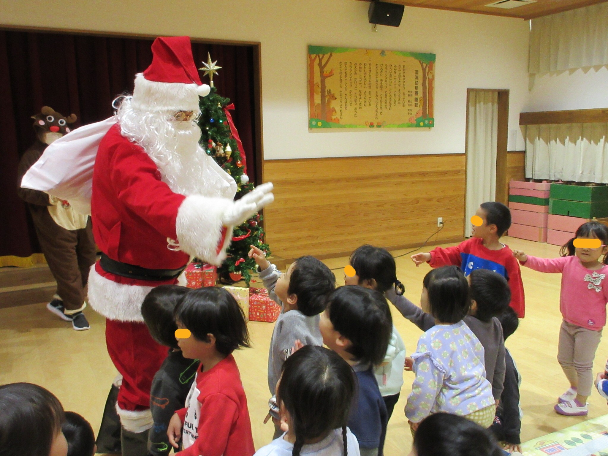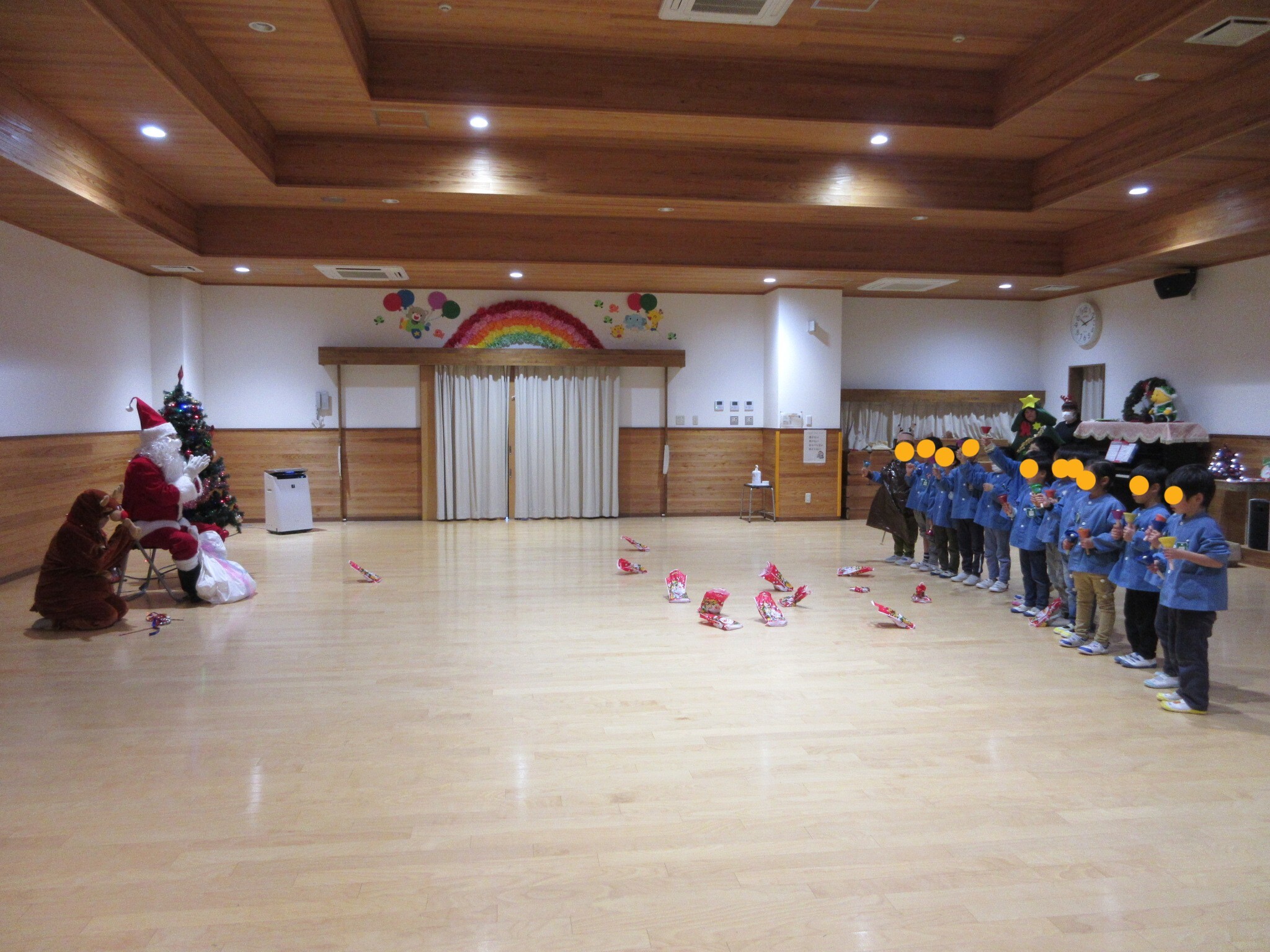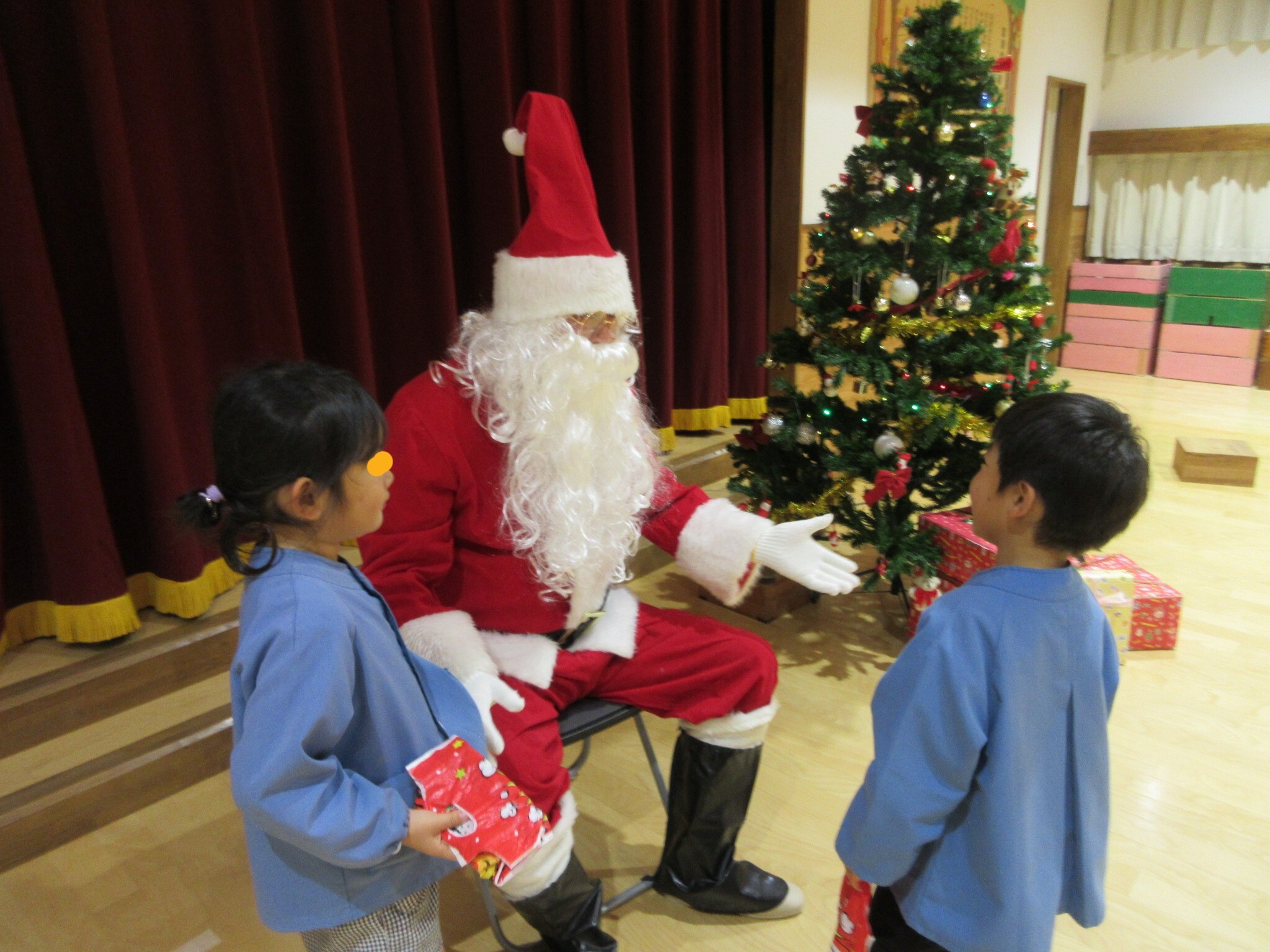 保育所のお友達も泣かずにサンタさんの手にタッチ。