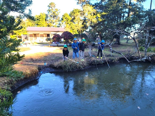 いつもザリガニ釣りを楽しむ池に