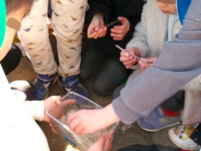 氷が張っていて、子ども達も大騒ぎ!