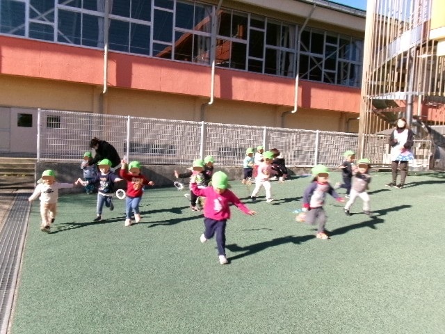 凧あげを楽しんでいるうさぎ組さん。