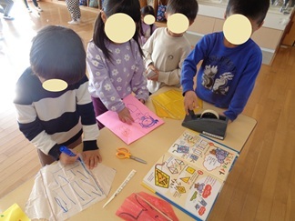 凧を作っています。ワクワクしますね。