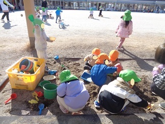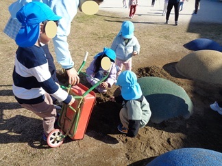 園庭では砂場や三輪車、スクーターと子ども達は思いっきり遊んでいます!