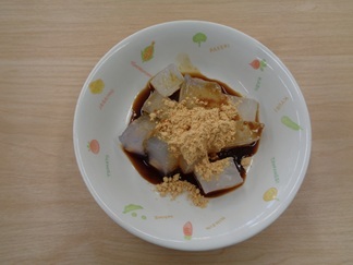 おやつは、くずもち(黒蜜きな粉)