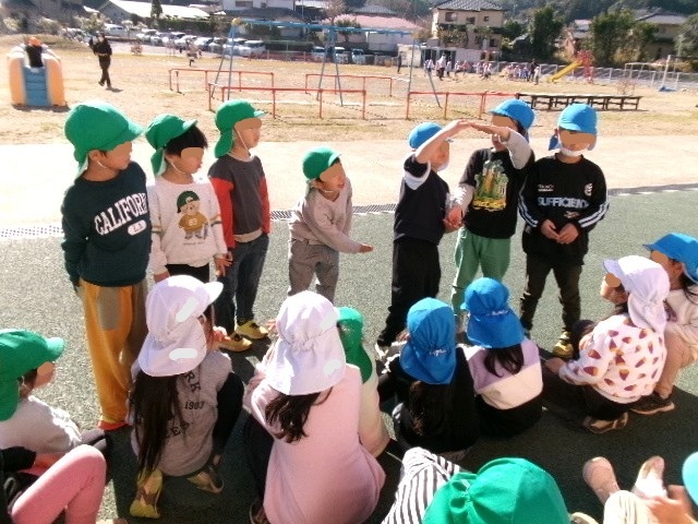 長縄で遊んでいる仲間も、