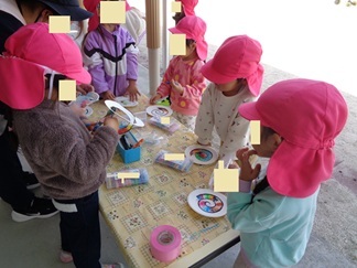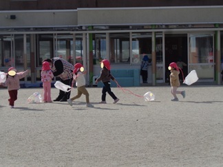 ぱんだ組のお友達は凧あげを楽しんだり新たな凧作りをしたりしています。