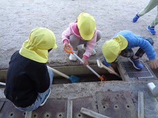 暖かい日だったので、側溝の掃除をしました。みんな、働き者です!あっという間にきれいになりました。お手伝い、ありがとう。