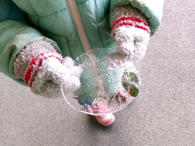 葉を入れて氷を作ってきた年少さん。