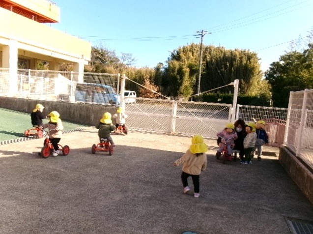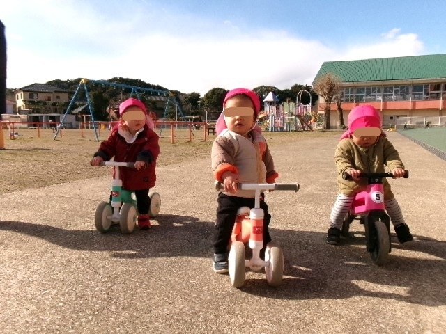 三輪車に乗ったり、寒さに負けず