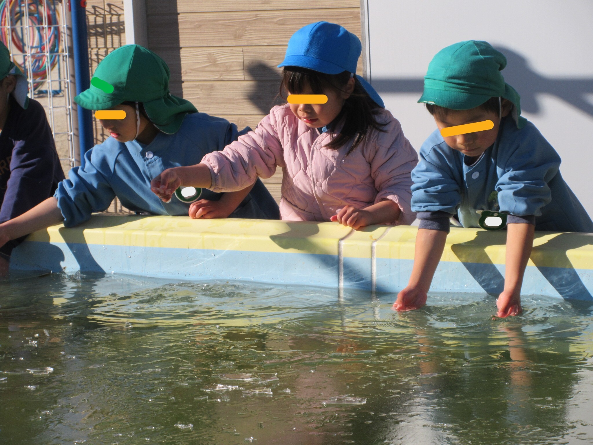 ぱんだ組さんも一緒に氷取りを楽しんでいます。