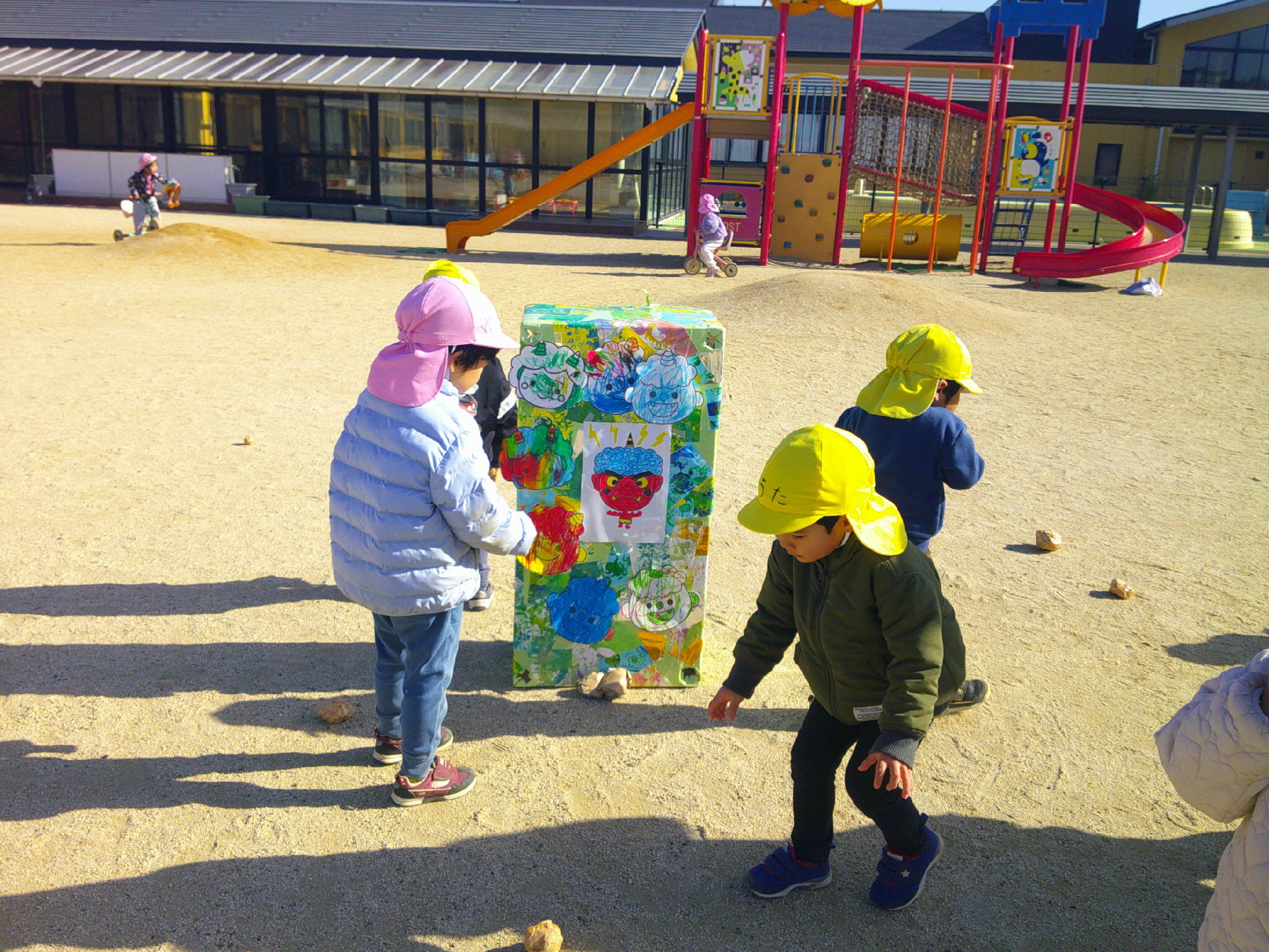 段ボールでできた鬼も出てきて
