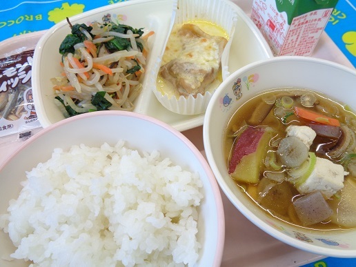 ごはん 鶏肉のチーズ焼き ほうれん草とこんぶ和え 牛乳 アーモンド小魚