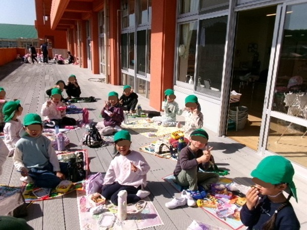 風があったため、お弁当はテラスで。