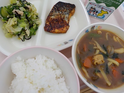 ごはん 鯖のスタミナ漬け うま塩昆布和え カレー南蛮汁 牛乳